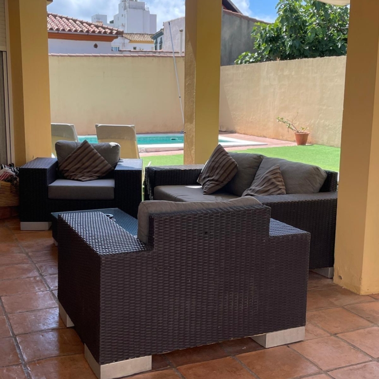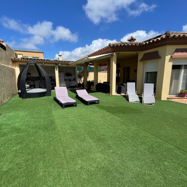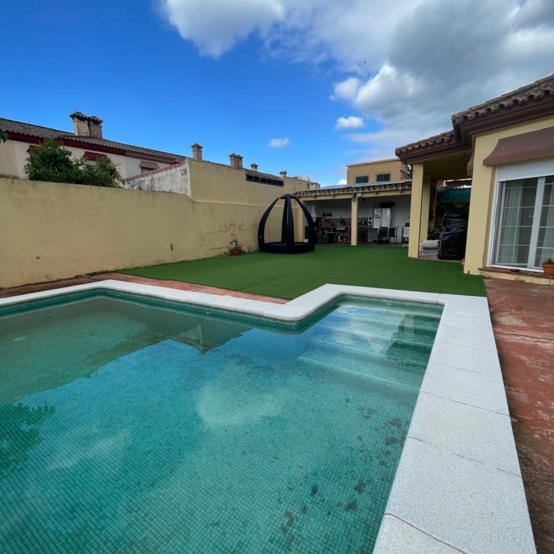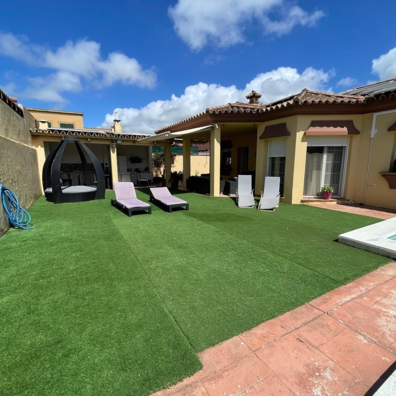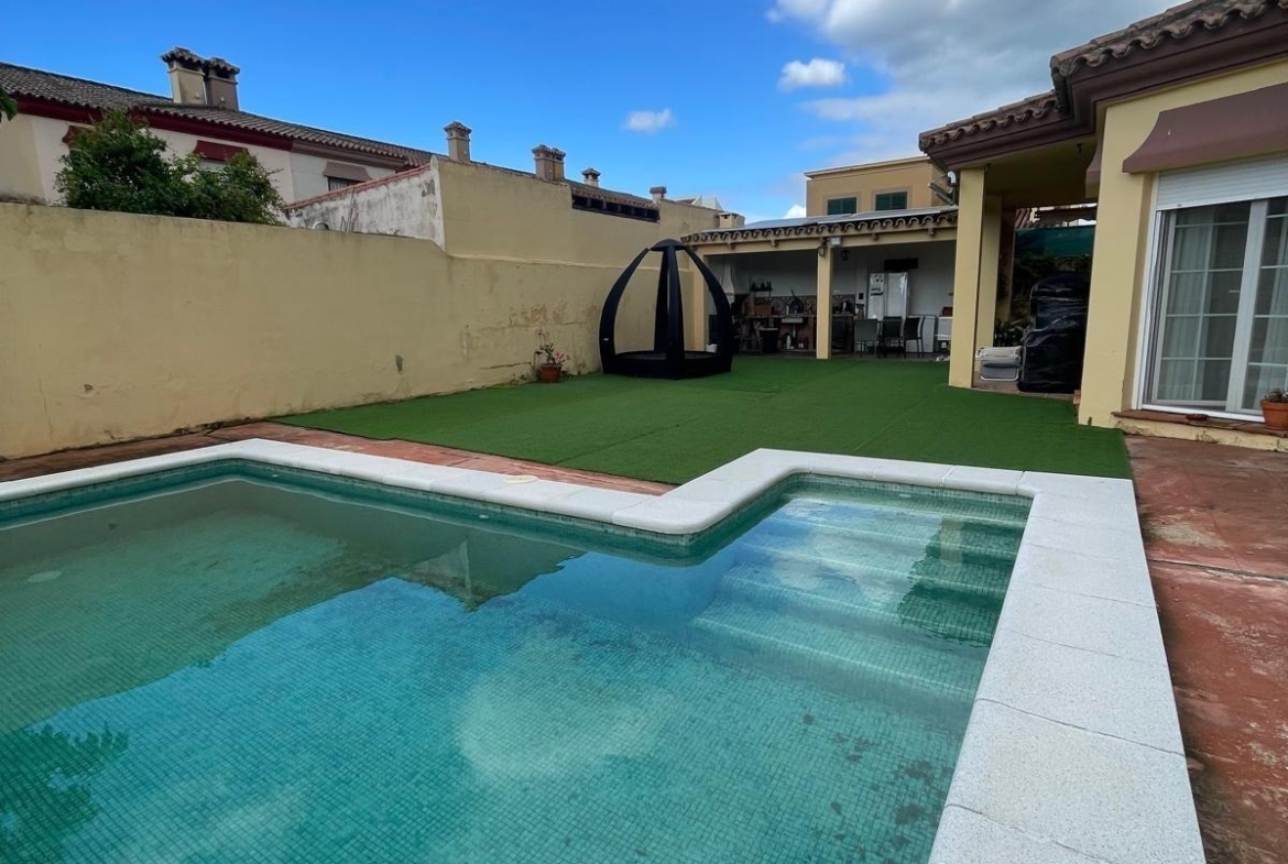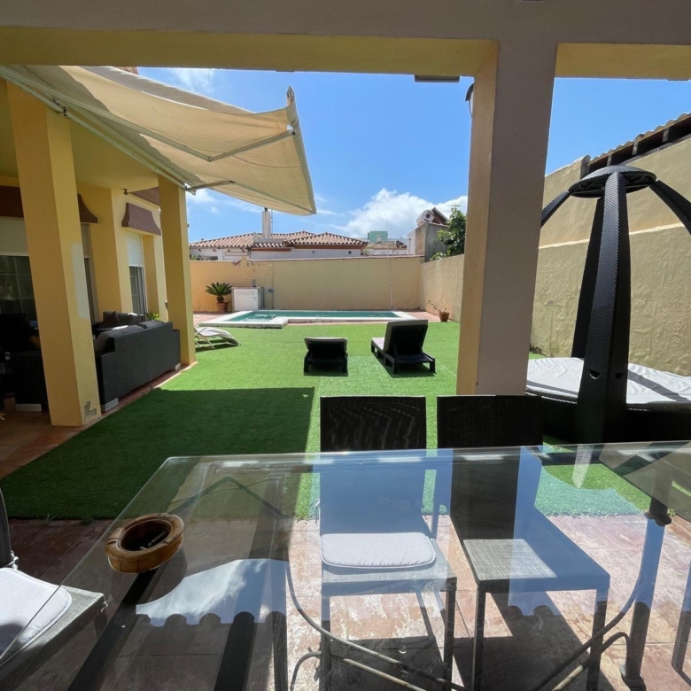 La vivienda, distribuida en una sola planta, cuenta con: 198 m2 construidos Dos acogedores porches ️ 4 dormitorios con armarios empotrados (2 con vestidor) 2 baños completos 1 aseo adicional ️ Amplio salón ideal para reuniones familiares ️ Cocina equipada con electrodomésticos de alta gamaEn el exterior disfrutarás de: Piscina privada rodeada de zonas verdes☀️ Paneles solares (eficiencia energética y ahorro) Entorno tranquilo y residencial Ubicación inmejorable: a solo 2 minutos caminando de la playa de El Rinconcillo, perfecta para disfrutar del mar durante todo el año.