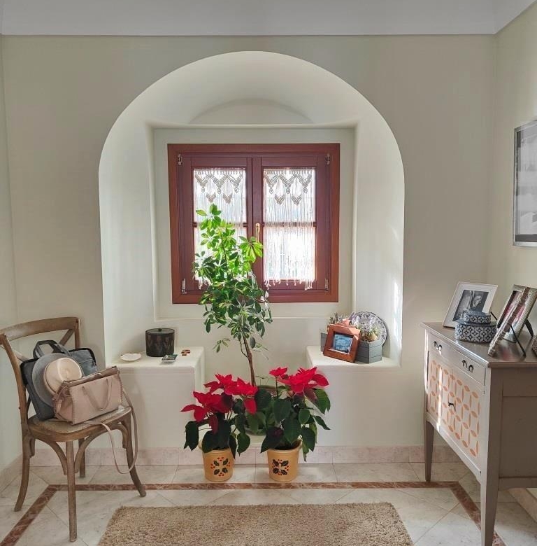De estilo andaluz, la casa se organiza en torno a un encantador patio interior con fuente, aportando luz y frescor a toda la vivienda.
