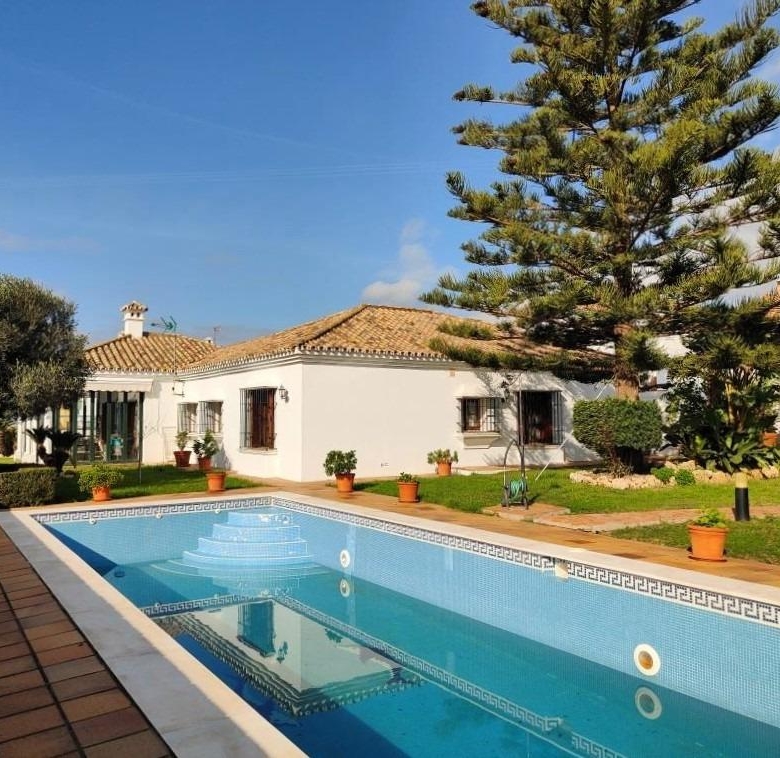 Chalet independiente de una sola planta con piscina privada en Cortijo Grande, Los Barrios.